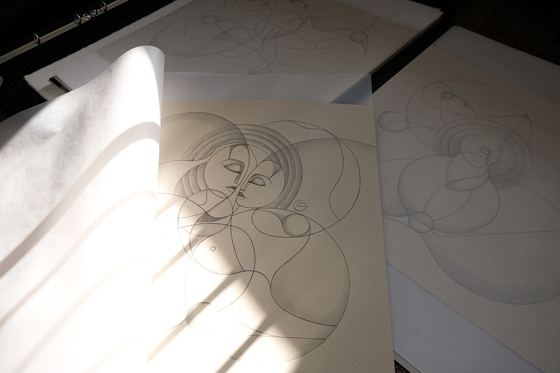 Геометрична структура графіки підкреслює цілісність процесу та врівноважує стани. Вона утримує їх разом, дозволяючи гнучкості й рішучості існувати в єдиному, узгодженому ритмі.