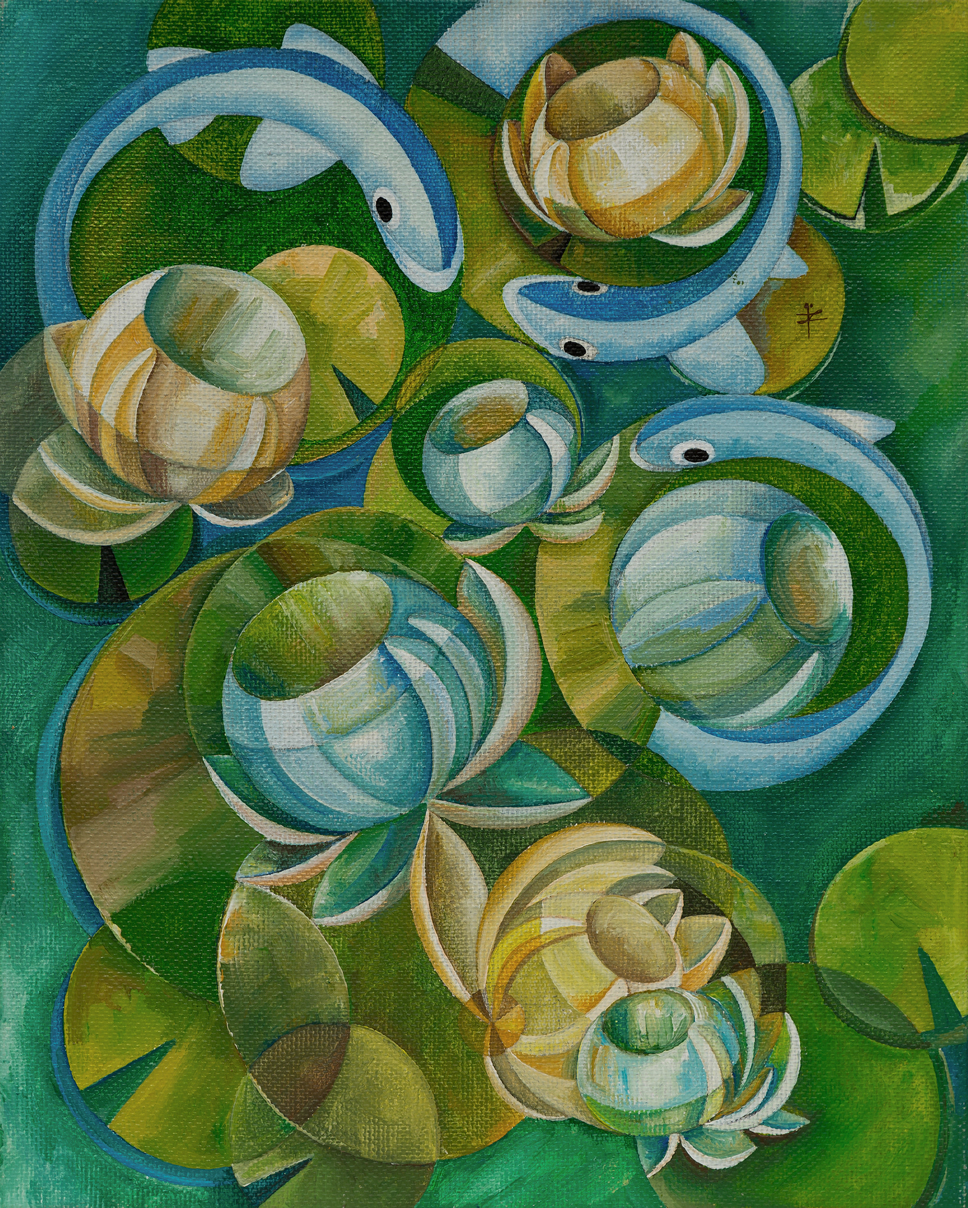 The calm lake, the simplified lotus leaves, the circular forms — all became metaphors for thought, reflection, and creation. Even then, geometry acted as a subconscious anchor, an intuitive way to distill emotion into symbol.