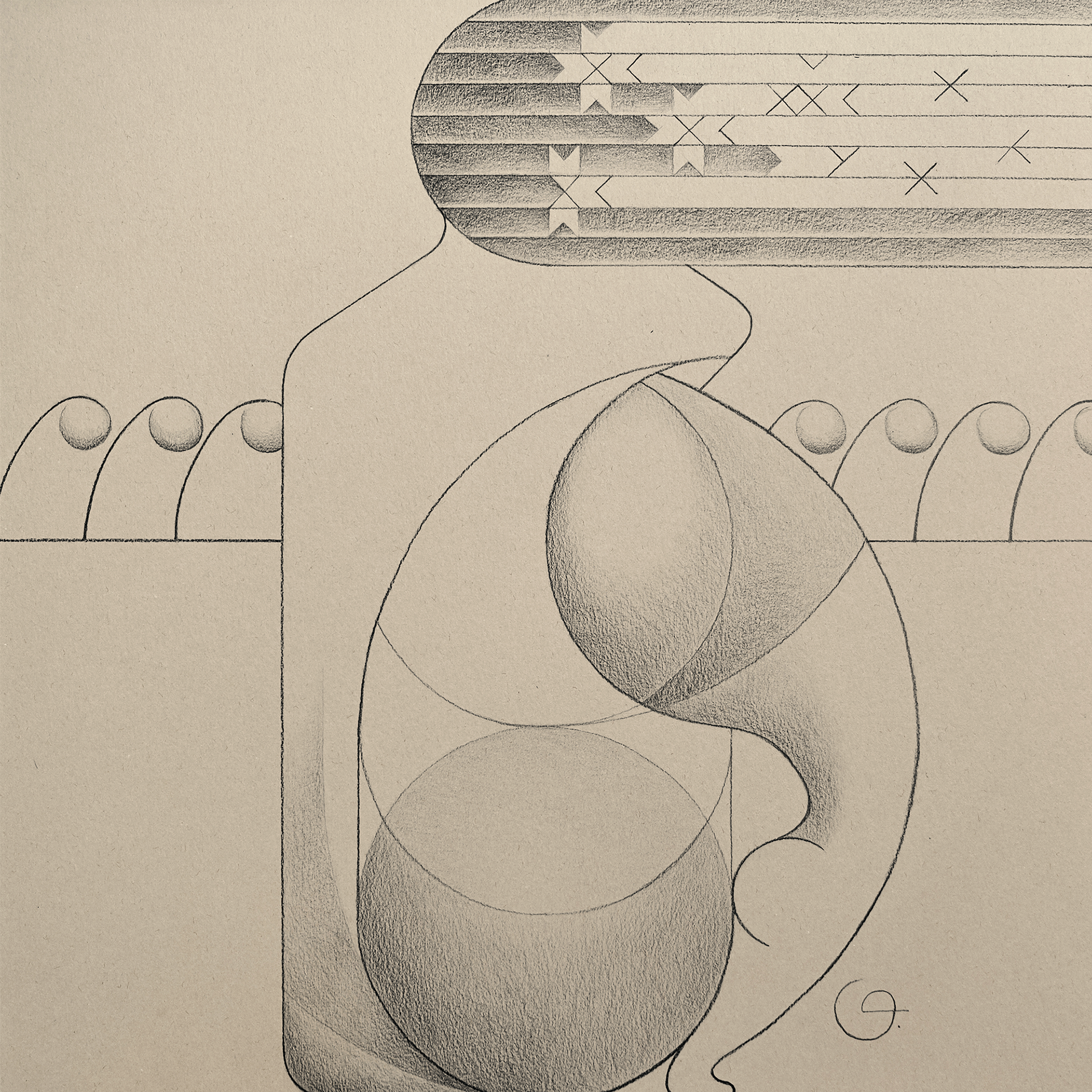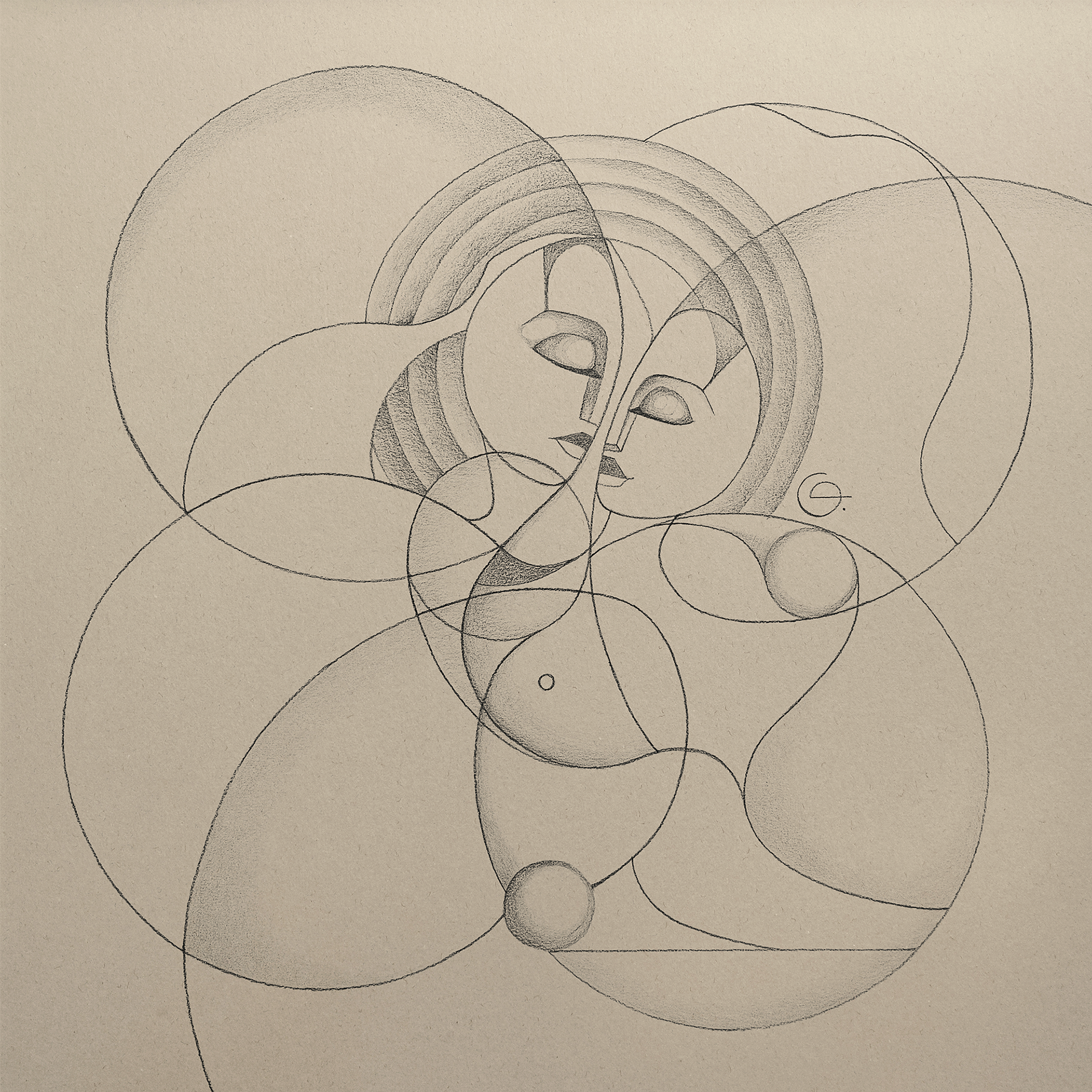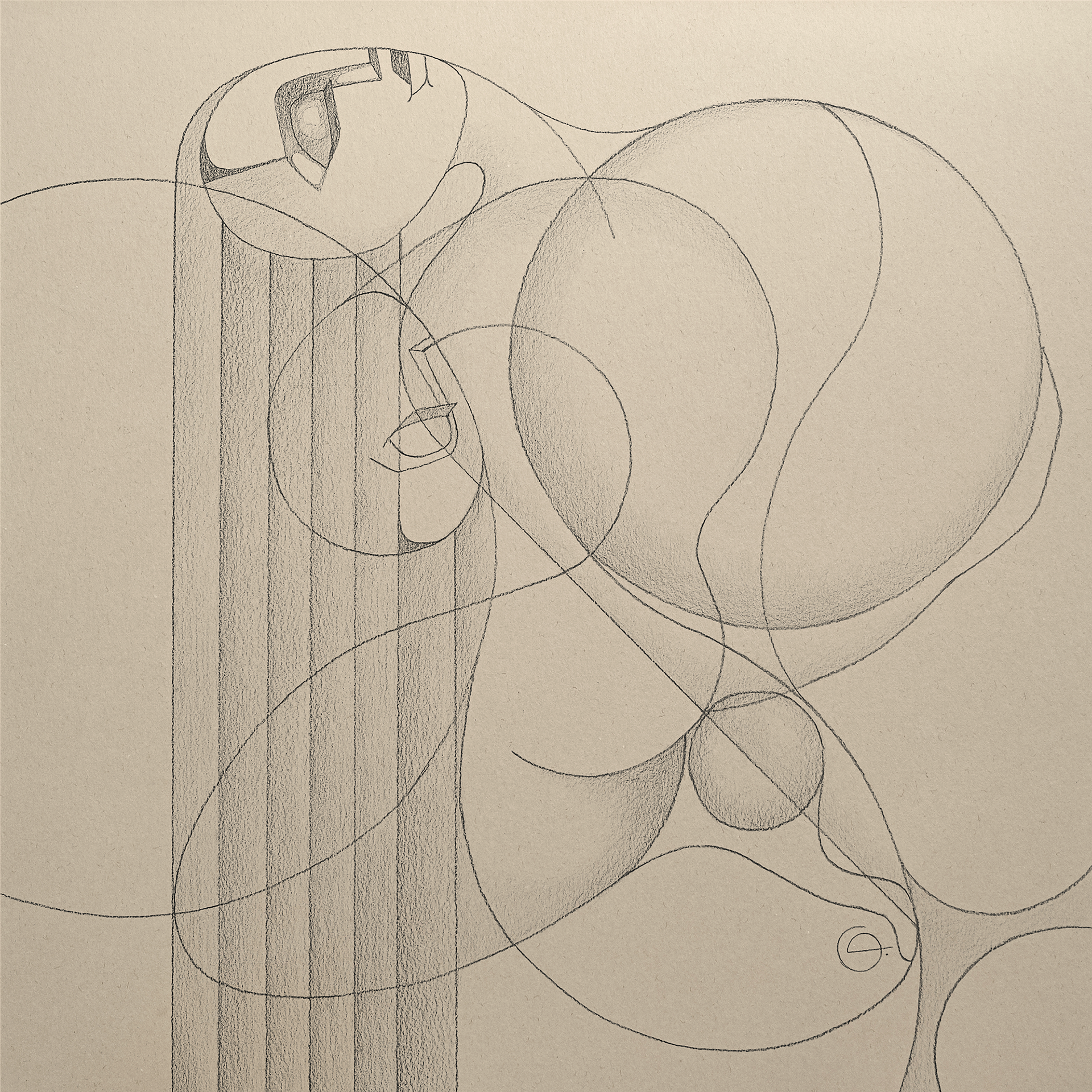 Лінії, ритми й фігури вибудовують взаємозалежну структуру, де памʼять, досвід і сприйняття зʼєднані невидимими звʼязками. Жіноча форма зʼявляється не як образ, а як вмістилище — точка перетину множинного в межах єдиного.
